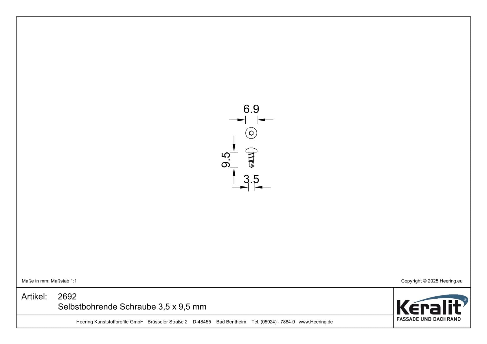 Selbstbohrende Schraube 3,5 x 9,5 mm